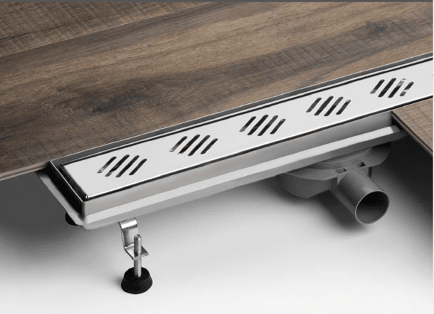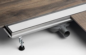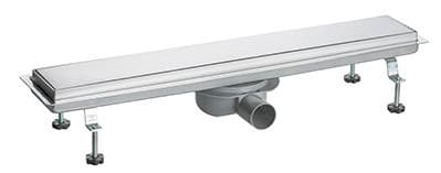 LINEARDRAIN avec couvercle réversible à carreler, avec TOP VALVE et Base, sortie latérale